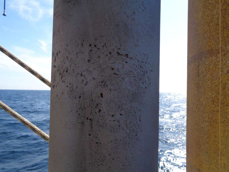 Op een offshore platform werd ernstige corrosie vastgesteld aan een riser (platformpoot). Deze riser is een cruciaal constructief onderdeel en staat continu bloot aan een agressieve maritieme omgeving.